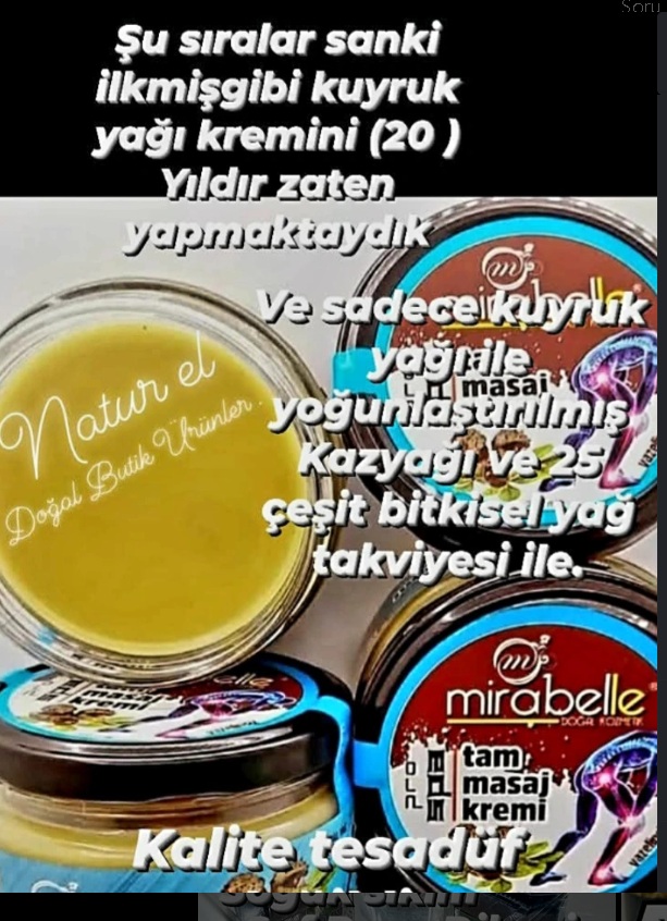 Vazelinsiz. At kestane özlü Kuyruk yağı ve kaz yağının 13 çeşit bitkisel yağ takviyesi ile bileşiminden elde edilen tam masaj kremimiz.